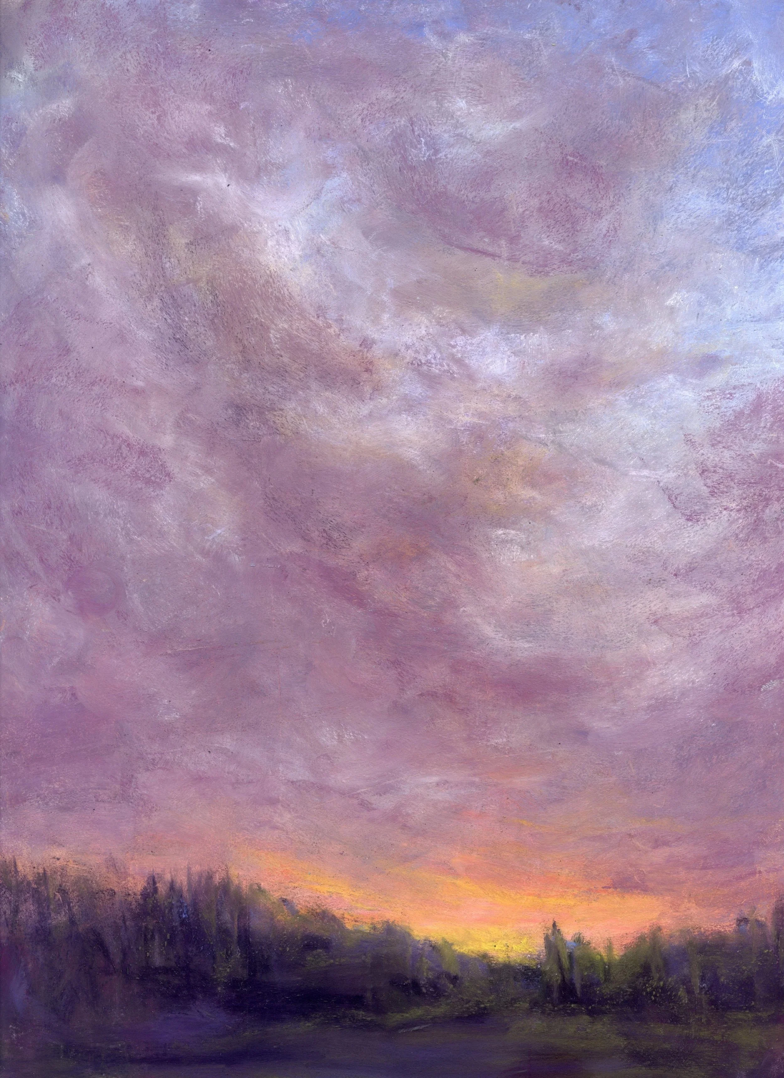 Tricia’s pastel paintings are a combination of soft and hard pastels done on sanded paper or panel. Pastels are almost pure pigment that can be laid down on a substrate by stick or brush. Her work concentrates on landscapes and oceanscapes, but also extends to detailed studies and works of skies and clouds. Recent works are more abstract and abbreviated landscapes.